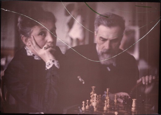 Unidentified couple playing chess c. 1907
