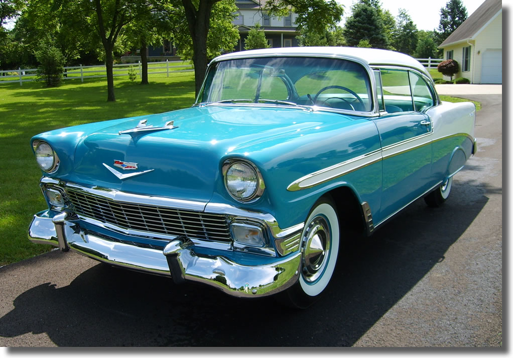 The 1956 Chevrolet Bel Air came with a dramatic facelift when it appeared with a more conventional full-width grille, instead of the Ferrari-inspired front end seen on the 1955 model. The Bel Airs boasted distinctive two-toned side body treatments that, along with the airplane-inspired hood ornament, imparted a look of motion. Single housings incorporated the taillight, stoplight and backup light, and the left one held the gas filler – an idea popularized on Cadillacs. Some buyers of the 1956 Bel Air could even get a Corvette 225-horsepower engine. With a top body weight of 3,506 pounds and a maximum sticker price of $2,608, Chevrolet built 669,064 1956 Bel Airs. Well-restored Bel Airs can get a lot more now than $2,608, which is a down payment for many contemporary vehicles.