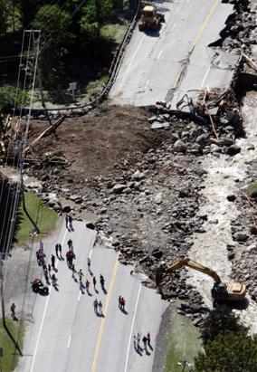Damage from Hurricane Irene on Route 100 in Killington, VT.