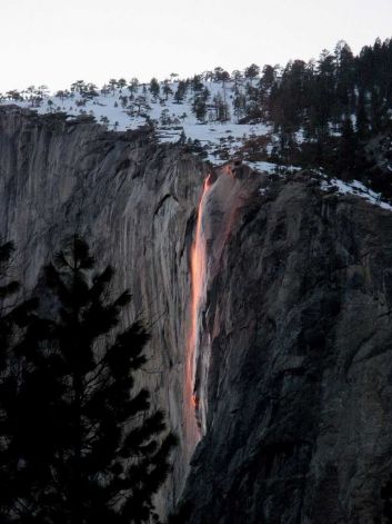 This is nature at its best and most extraordinary. In a moment when the sun and earth align perfectly, water falling at Glacier Point in Yosemite National Park gives off a reddish glow called Horsetail Falls. It occurs in a fleeting instant at sunset only in mid-February – if the winter weather cooperates. On those days, the setting sun illuminates this lesser-known of the park’s waterfalls so precisely that it resembles molten lava as it flows over the sheer granite face of the imposing El Capitan. Photo courtesy of Yosemite National Park Service, Scott Gediman).