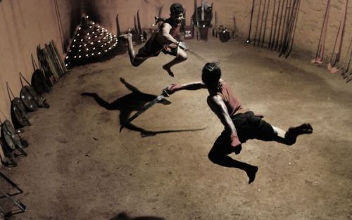 Kalaripayattu fighters become airborne, as they engage in swordplay during a show in Kerala, India.  The South Indian martial art is thought to be among the oldest in the world, tracing its roots back 3,000 years.  Photograph by Armand Poblete for National Geographic.