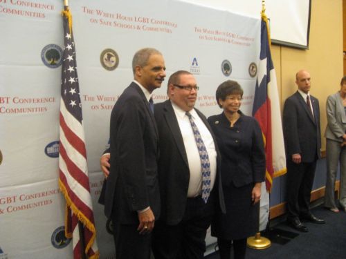 U.S. Attorney General Eric Holder and White House Senior Advisor Valerie Jarrett flank my friend, Rafael McDonnell, communications and advocacy manager at the Resource Center of Dallas, at last night’s conference.