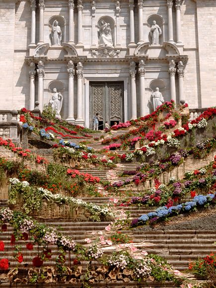 Flowers line the steps of a cathedral in Girona, Spain, along the Costa Brava region, for last year’s “Temps de Flors” festival.  The annual spring gathering sees an explosion of colorful flowers that clutter Girona’s patios and gardens and surround a number of public buildings.  This year’s event will be held May 12 – 20.  Photo courtesy David Adamson.