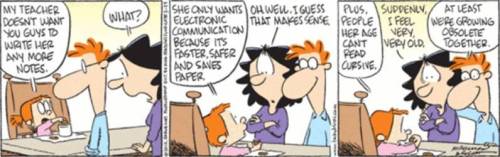 Last week, for Father’s Day, I presented my father with a card and a strawberry-topped cheesecake.  Inside the card I hand-printed a brief note thanking him for being a great father; like most of us men, my father doesn’t need flowery prose to get the message.  I signed it simply “Your Son” in cursive.  That’s where I encountered trouble.  The “Y” came out looking like a microbe one would see under a microscope.  The “S” appeared like an obese “G.”  I had the same problem with my Mother’s Day card last month and, a couple of weeks before then, a birthday card I sent to a friend.  But, when I struggled through writing those two simple words – “Your Son” – on the Father’s Day card, I realized how much the cursive script had become an anomaly.  It’s practically a dead art form.