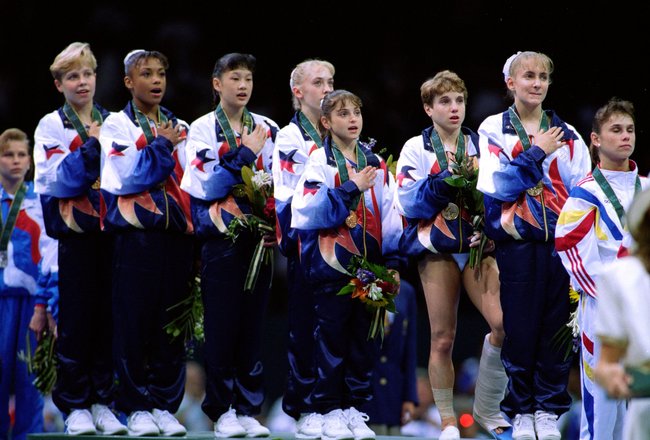 1996 – The U.S. Women’s Olympic Gymnastics team won its first-ever team gold at the Summer Games in Atlanta.  The team was composed of Amanda Borden, Amy Chow, Dominique Dawes, Shannon Miller, Dominique Moceanu, Jaycie Phelps and Kerri Strug.