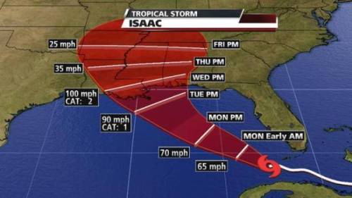 Tropical Storm Isaac is still expected to reach hurricane strength by Monday, August 27, and make landfall somewhere between New Orleans, Louisiana, and Mobile, Alabama. Meanwhile, in Tampa, Florida, the Republican National Convention is already underway, as thousands of delegates, journalists and protesters have gathered. Florida hasn’t hosted a national political convention since 1972, when both the Democrats and Republicans convened in the state. But, the storm has also forced a revision of the GOP agenda. The RNC has crammed four days of activities and speeches into three; hoping that media coverage of the approaching storm doesn’t overshadow they’re carefully-scripted plans to highlight a presidential candidate no one really likes.