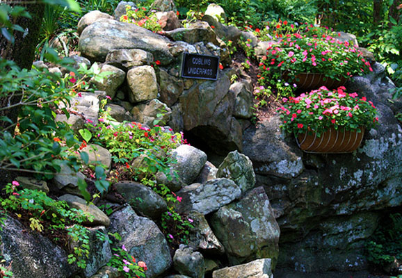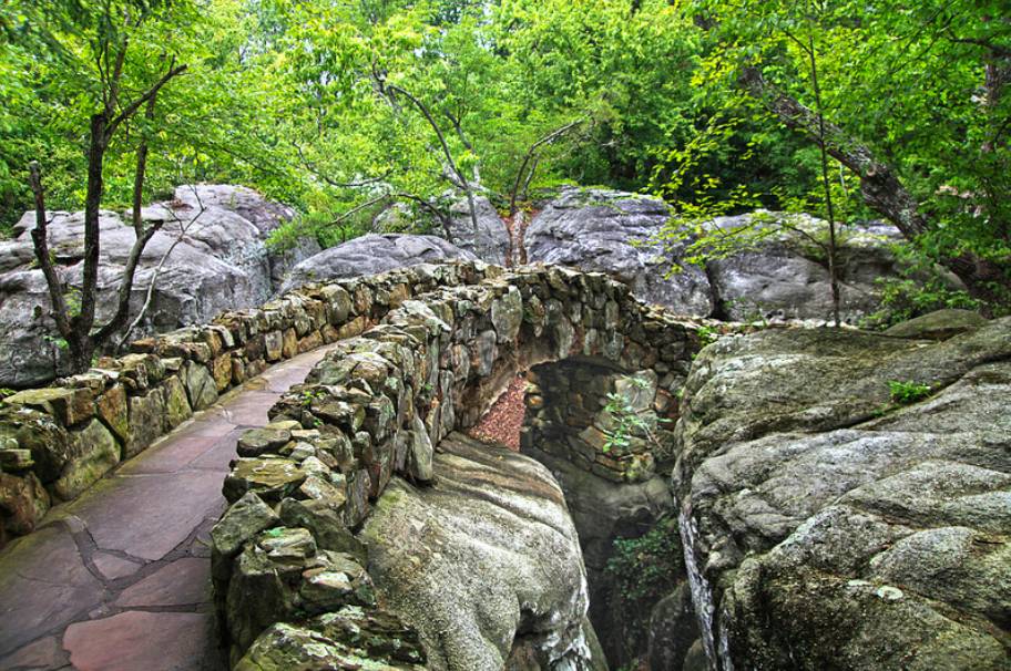 Rock City is near Ruby Falls in the Lookout Mountain region of far northern Georgia, near Chattanooga, Tennessee. Supposedly you can see 7 states from the highest vantage point atop the mountain – a claim first made during the Civil War – but that’s never been proven scientifically. Regardless, almost every point on the mountain provides stunning vistas with massive and ancient rock formations and over 400 native plant species. Rock City is celebrating its 80th anniversary this year as an official tourist attraction. Unfortunately, they’ll only be open through September 3, but here’s a small collection of pictures of this incredible locale.