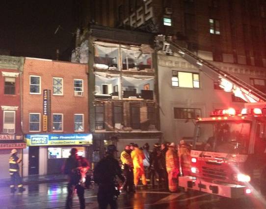A building in New York City on 8th Avenue between 14th and 15th Streets with the entire front blown off.