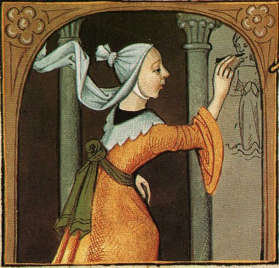Unknown artist from Giovanni Boccaccio, “De Mulieribus Claris,” anonymous French translation, Le livre de femmes nobles et renomees, France, c 1440 British Library Artiste préparant une fresque.