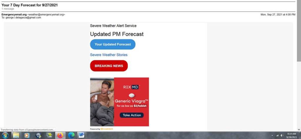 You never know what you’ll get with email, text or any other sundry cyber forms of communications.  Proof: the above email from a local weather service.