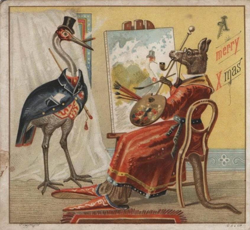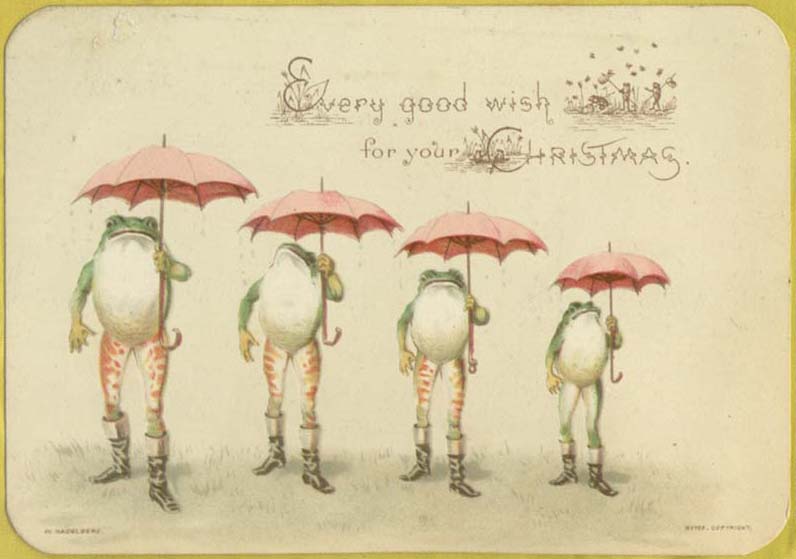 Whatever was wrong with them, we can undoubtedly determine their bizarre mindsets from a glance at some of their holiday cards. I mean…what reasonable person would glean Christmas joy from images of dead birds and dancing frogs? Then again, look who’s talking!