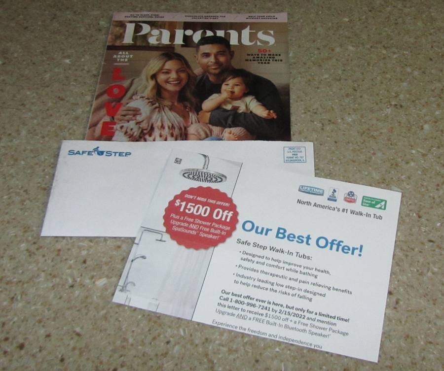 Occasionally I receive mailings from a company that installs walk-in tubs – the kind used by, you know, old and or disabled people. But, for the last couple of years, I’ve also been receiving periodicals from “Parents” magazine. I suddenly feel like I’m one of the three last people on Earth – and the other two are a drug dealer and a politician.