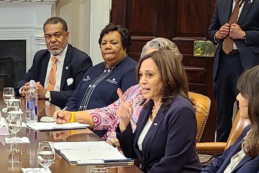 Vice-President Kamala Harris, praising a group of Texas Democrats for walking out on a state legislative session in protest of a strict new voting bill