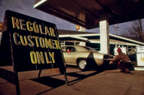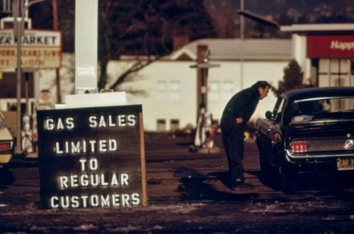 Those of you age 40 and over (yes, this means you, too!) should remember the oil crisis of 1973. It started in October of that year when the member nations of the Oil Exporting Countries (OPEC) abruptly decided to stop exporting oil to the United States and several other countries. The U.S. was most affected, however, because we’d already developed an addiction to driving by the 1970’s, and the average vehicle earned less than 15 miles per gallon. There’s always been a love – hate relationship between the U.S. and the nations of the Arabian region. American geologists discovered oil beneath the sands of the Saudi deserts in the 1930’s, but full-scale production didn’t begin until after World War II. That coincided with the rise in automobile usage in the U.S. and the construction of the massive interstate highway system. The Saudi people moved from a feudal-type existence into the modern world – and got rich in the process. But, the governments of the various OPEC nations despised the U.S. for its liberal ideals, such as allowing women to vote and drive the vehicles that needed all that oil and its support of Israel. This latter factor has always been a sore point between the U.S. and the OPEC countries – then as now. And, it was actually the primary reason for the OPEC embargo. Egypt unexpectedly attacked Israel on October 6, 1973, and the U.S., of course, took Israel’s side. The embargo lasted into 1974 and made Americans more conscious of their energy consumption. I remember scenes like those depicted in these photos. They’re not what one would call “sweet memories.”