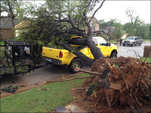 Cleanup has begun from the massive storm system that rolled through the Dallas / Fort Worth metropolitan area yesterday afternoon, generating heavy rain and wind and spawning a number of tornadoes. Amazingly there have been no reports of serious injuries or deaths. Here’s just a sampling of the tempests and the damage left in their wake.