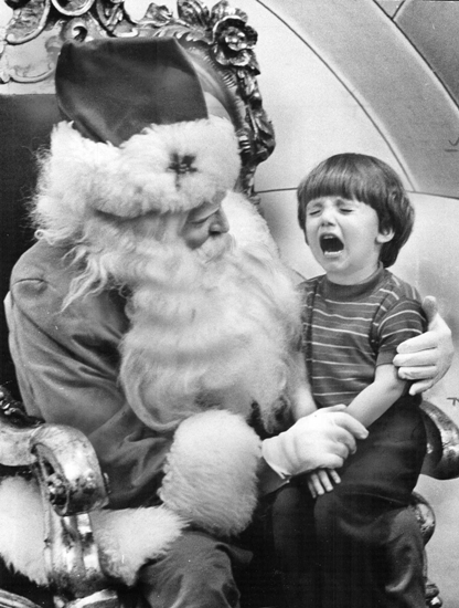 Nothing says Christmas like evergreen trees, candy canes, strings of colorful lights, ginger bread-spiced Xanax and kids screaming in terror while perched on Santa’s lap. The latter is particularly reminiscent of those times when you feel the yuletide holiday brings out the best in people. As these photos indicate, that’s just not true. Yes, it’s that glorious time of the year. Merry Christmas, all you little fuckers!