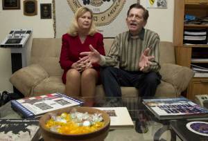 Doug and Pam Sterner are photographed in their home in Alexandria, Va. Pam is the author of a college paper that led to the drafting of the Stolen Valor Act, aimed at curbing false claims of military valor. Doug exposes phony medal recipients. Carolyn Kaster / The Associated Press