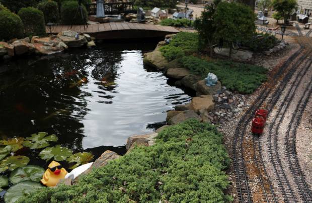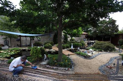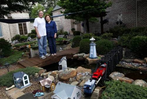 Beginning this weekend, the North Texas Water Garden Society will stage their 21st annual “Tour of Ponds.” This is when various homeowners throughout the entire Dallas / Fort Worth metropolitan area present their decorative ponds for public viewing. Former Dallas City Councilman Ron Natinsky and his wife, Nancy, are among the homeowners. But, Ron Natinsky has done something different with his pond; it features a quarter-mile of train tracks winding through a scenic village and a large water garden highlighted by a stream, a bridge and glimmering koi fish. Some men – myself included – never grow up when it comes to model trains, cars and the like.