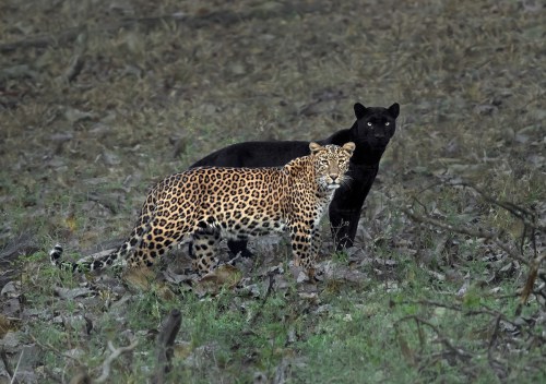 Since 2014, wildlife filmmaker and photographer Mithun H has searched for Saya, a black panther that’s been eluding his admirers in the Kabini Forest in India for years. After camping out in the area for six days recently, the photographer captured an image of Saya, alongside his leopard companion, Cleopatra.