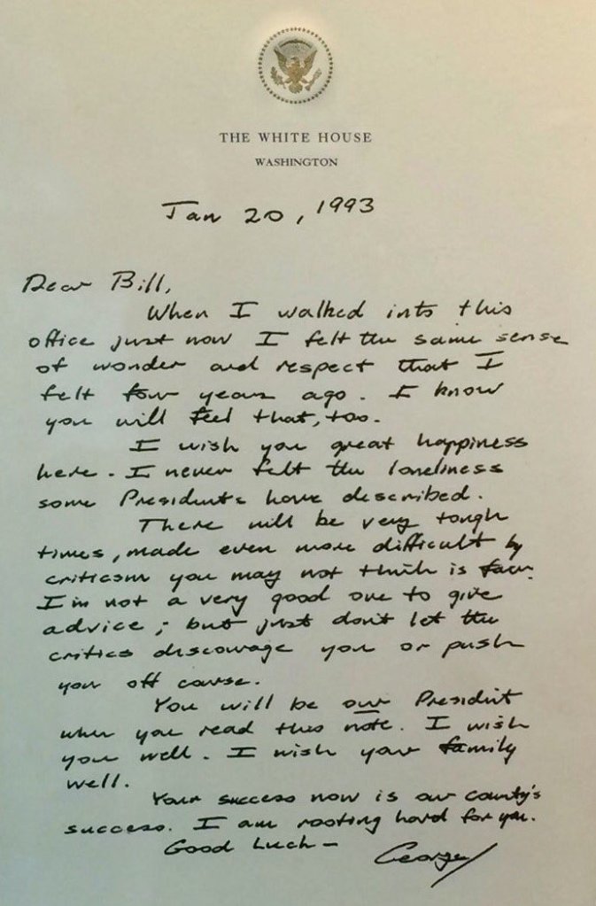 On the day he left office in January of 1993, President George H.W. Bush left this hand-written note for incoming President Bill Clinton.