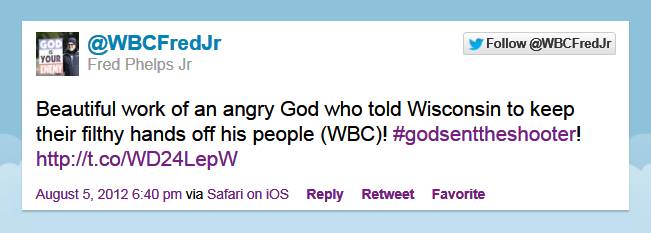 Tagged as Oak Creek Wisconsin, Sikh temple shootings, stupid comments, Westboro Baptist Church